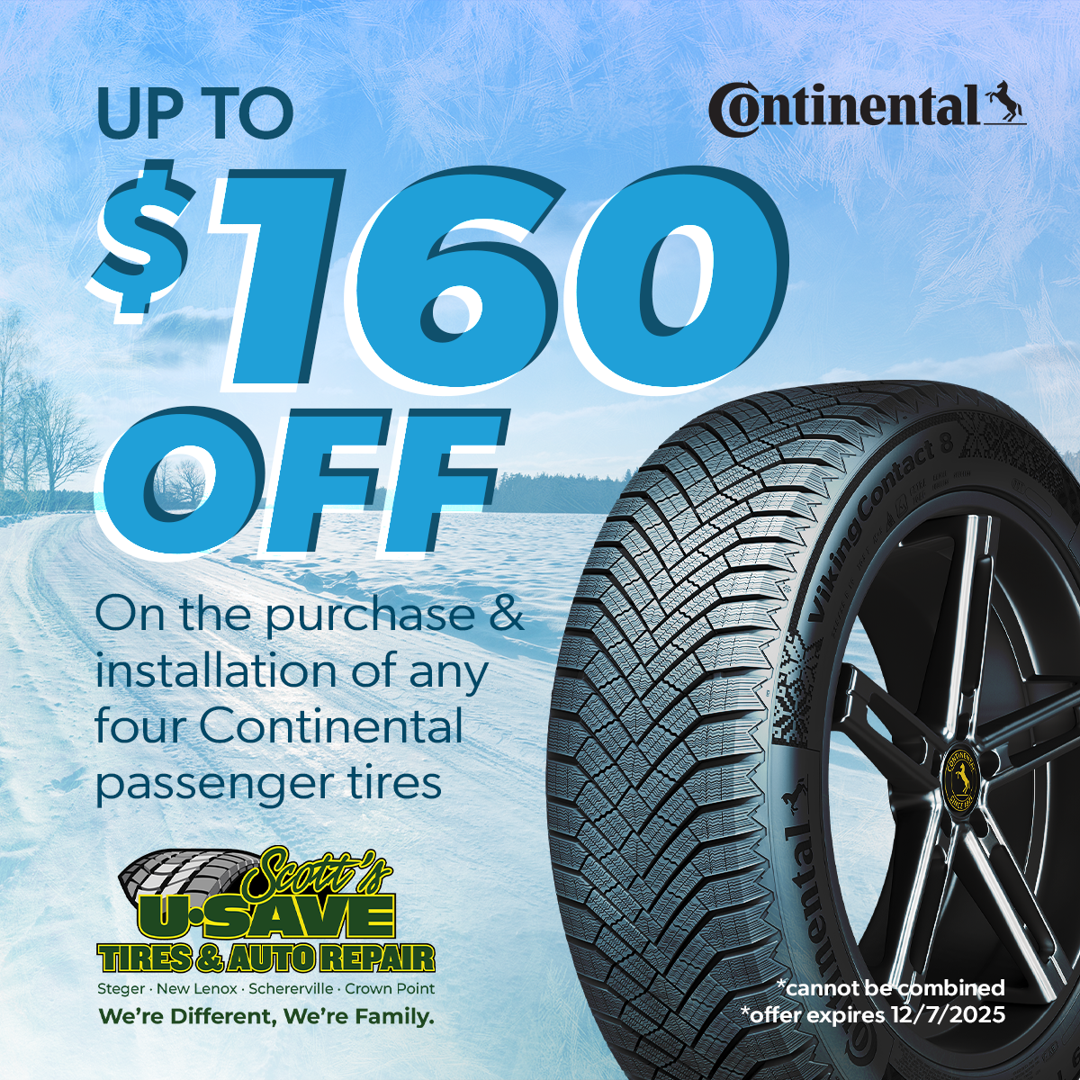 Receive up to $160 back on the purchase of four qualifying Continental passenger tires in the form of rebates