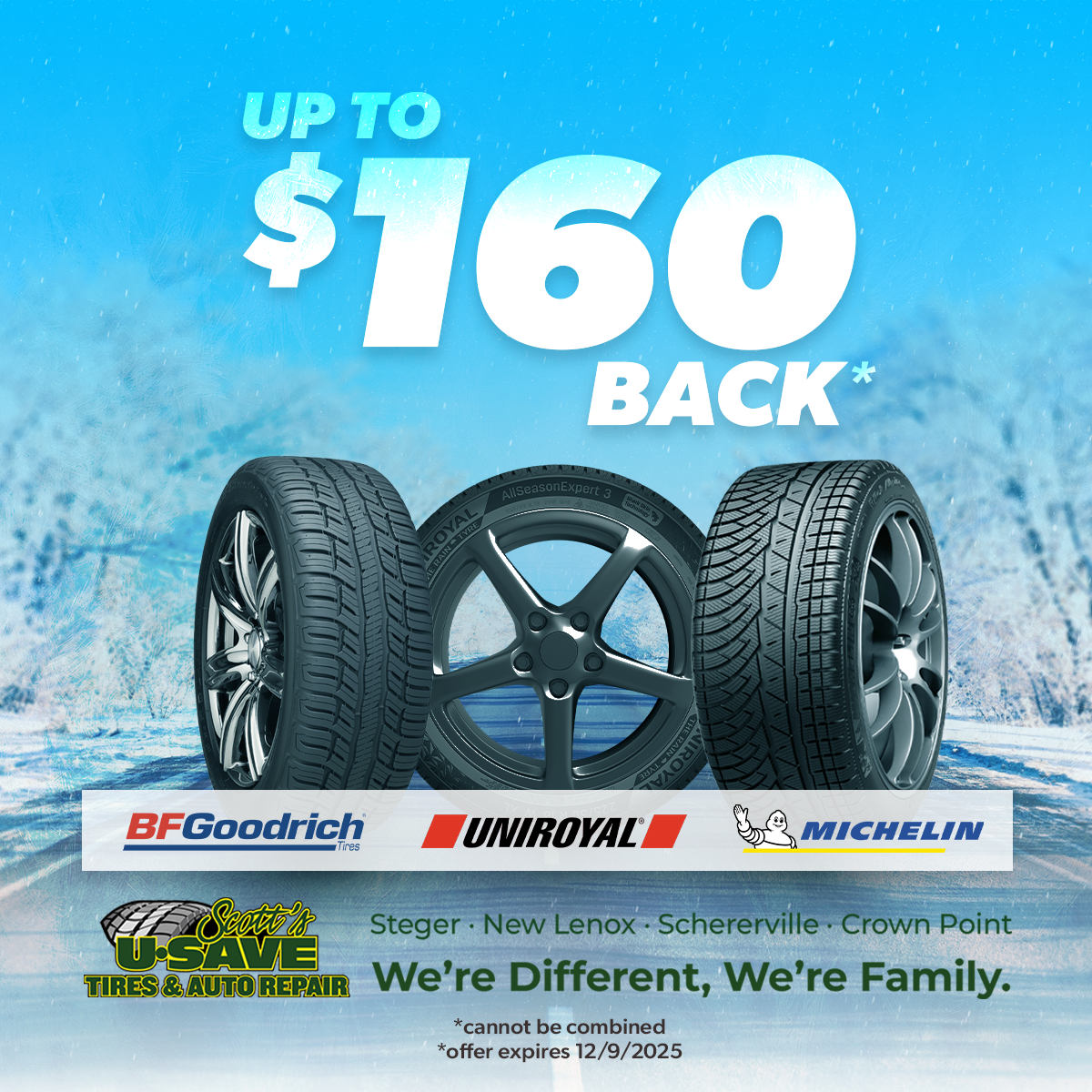 Receive up to $160 back on the purchase of four qualifying BFGoodrich, Uniroyal, or Michelin tires in the form of rebates