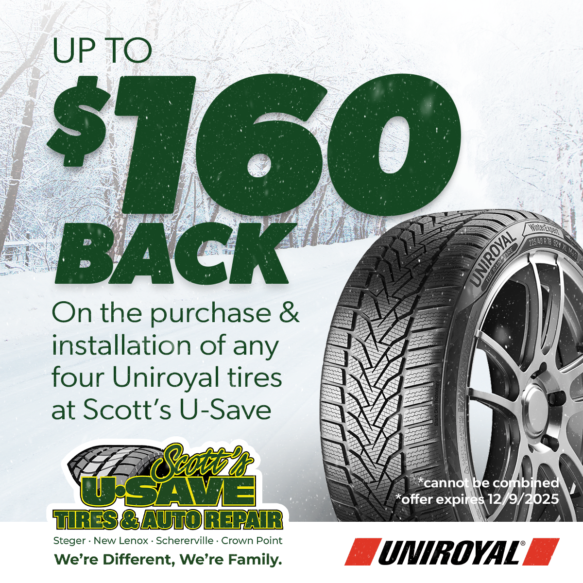 Receive up to $160 back on the purchase of four qualifying Uniroyal tires in the form of rebates